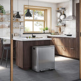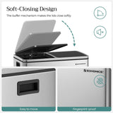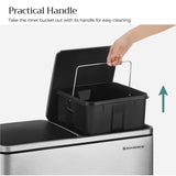 Handige bediening en stille sluiting: Stap gewoon op het voetpedaal en open het deksel, zelfs als u beide handen vol hebt. Gooi het afval vervolgens in de bijbehorende binnenemmer. Laat het voetpedaal los en het deksel sluit langzaam en geruisloos. Op deze manier wordt de rustige sfeer in uw huis niet verstoord.