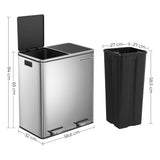 Sorteer uw huishoudelijk afval: De afvalbak met 2 aparte compartimenten is de perfecte oplossing voor het scheiden van dagelijks afval zoals restafval, organisch afval, enz.