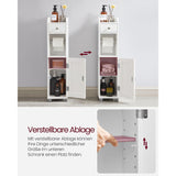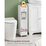 - Voor kleine ruimtes: met zijn compacte afmetingen (20 x 18 x 76,7 cm) is dit badkamermeubel geschikt voor kleine badkamers en gemakkelijk te verplaatsen. Met zijn strakke lijnen en helder wit, biedt hij niet alleen opbergruimte maar geeft hij ook meer stijl aan uw badkamer