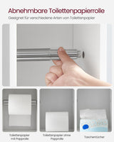 - 5 niveaus: Een onderkast met een verstelbare plank voor 3 rollen toiletpapier of andere toiletartikelen, een lade voor kleine voorwerpen, een houder voor toiletpapier en een bovenste plank voor potplanten.