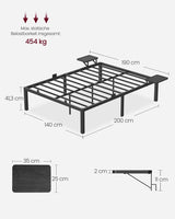 Bed frame - Metalen frame - Tweepersoonsbed - 200 x 140 cm - Zwart