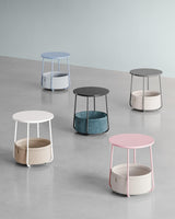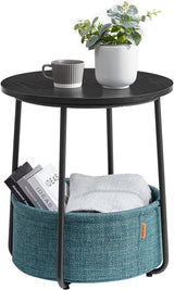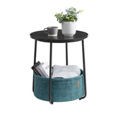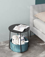 Ronde bijzettafel - Met stoffen mand - Metalen frame - Zwart blauw