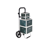 ontvangst van het pakket hoef je alleen nog maar het trolleyframe uit te vouwen en de wielen en de tas in elkaar te zetten. Een accuschroevendraaier is niet nodig omdat de wielen met een “klik” vastgezet kunnen worden en de tas met klittenbandsluitingen vastgezet kan worden.