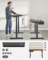 Elektrisch bureau - Hoogte verstelbaar - Memoryfunctie met 4 hoogtes - Met stopcontact - Zwart - 60 x 120 cm