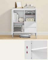 • Gemakkelijk schoon te maken: dankzij de hoge poten van dit dressoir kunnen stofzuigrobots er gemakkelijk onderdoor rijden en je vloer schoonmaken, waardoor je tijd en moeite bespaart.