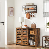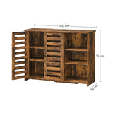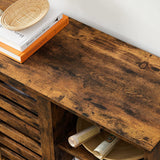 • Wat je krijgt: een opbergkast in rustieke houtkleur van 100 x 35 x 75 cm met 3 open vakken en 2 lamellendeuren, die zowel open als verborgen opbergruimte biedt en je huis verfraait