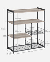 Keukenrek - Keukenkast - Opbergkast - 4 niveaus - Metalen frame - Houten planken - Grijs