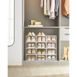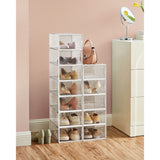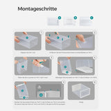 - [Set van 12] 12 eenvoudig te monteren plastic dozen, elk met een binnenmaat van 30 x 9 x 15 cm, geschikt voor schoenen tot maat 44, zodat je de rommel in een mum van tijd kunt opruimen! Sneakers, pantoffels en hoge hakken - allemaal prima