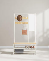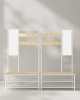 Garderobekast - Kapstok - Met bankje en spiegel - 2 planken - Wit bruin