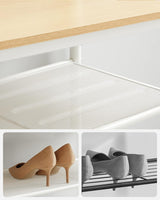 Fijnmazige roosterplankenOok hoge hakken en kleine voorwerpen kunnen er stevig op worden opgeborgen, zonder dat ze eraf vallen. |