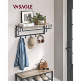 - [Drie-in-één ontwerp] De wandplank combineert een plank (66 x 30 cm), een ophangstang en 5 haken om aan je verschillende behoeften te voldoen en tegelijkertijd weinig ruimte in beslag te nemen