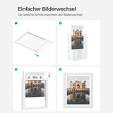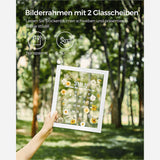 Laat afbeeldingen zweven: als je een mooie foto schildert of een geweldige landschapsfoto maakt, kun je er met deze fotolijsten een kunstwerk van maken. De lijsten houden een foto tussen de 2 ruiten, het lijkt alsof de foto in de lucht zweeft. Moderne look, wit oppervlak met nerf - deze fotolijsten passen bij verschillende interieurstijlen.