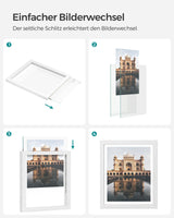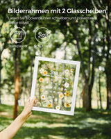 Laat afbeeldingen zweven: als je een mooie foto schildert of een geweldige landschapsfoto maakt, kun je er met deze fotolijsten een kunstwerk van maken. De lijsten houden een foto tussen de 2 ruiten, het lijkt alsof de foto in de lucht zweeft. Moderne look, wit oppervlak met nerf - deze fotolijsten passen bij verschillende interieurstijlen.