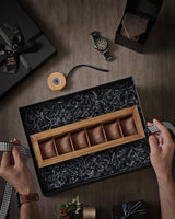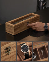 Horlogebox - Horlogedoos - 6 vakken - Glazen deksel - Hout - Bruin