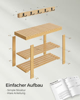 Schoenenbank - Met Wandkapstok - 5 Haken - Set in Bamboe - Bruin