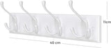 De garderobe is uitgerust met 4 diep gebogen haken, die voldoende ruimte bieden voor allerlei soorten kleding en voorwerpen. Dankzij de witte verf past deze haakstrip ook perfect bij andere meubels en is daarom een graag geziene gast in elke hal, foyer, badkamer of slaapkamer.