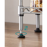 Stabiliteit heeft de hoogste prioriteit: het laatste dat u in uw keuken nodig heeft, is een onstabiele plank die steeds omvalt. Niemand wil een keukentafel schoonmaken waarop rozemarijn, tijm en paprikapoeder is gemorst, toch? Met dit keukenrek heb je eindelijk een stabiel onderkomen gevonden voor je kruidenpotjes, olieflessen etc. Hij is uitgerust met verstelbare poten om kleine oneffenheden in het tafeloppervlak te compenseren.