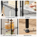 Keukenrek - Opbergrek - Met 5 niveaus - Metalenframe - Zwart