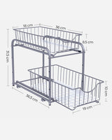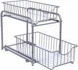 Keukenorganiser - 2 uittrekbare laden - Stapelbare lade-organiser - Voor keuken, badkamer - Zilver