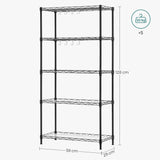 Keukenrek met 5 niveaus - Staand rek - In hoogte verstelbaar rasterrek - Zwart