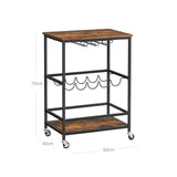 Serveerwagen - Met wielen - Barwagen - met legborden - 60 x 40 x 75 cm - Vintage - Bruin-zwart