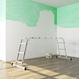 - Flexibiliteit met veiligheid: Versterkt door scharnieren met een diameter van 10 cm en beveiligd met veiligheidssloten, kan de vorm van de ladder eenvoudig worden aangepast: steiger, A-frame, ladder, rechte ladder en meer