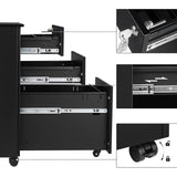Mobiele container - Ladeblok - Ladekast - Kantoorkast - Met wielen - Met slot - 3 lades - Zwart
