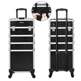 De zijdelingse, afsluitbare klepsluitingen vergemakkelijken het openen en sluiten. Er wordt een los deksel meegeleverd, waarmee het gebruik van de koffer variabel is. U kunt dit deksel naar wens combineren met het tweede, derde en laatste niveau. Met een telescopisch handvat en een verstelbare, afneembare schouderriem is de koffer zeer flexibel, of u hem nu draagt ​​of verplaatst. Een met rubber beklede kunststof handgreep zorgt voor een betere grip. Het etui is geschikt voor diverse sieraden. Je schatten zijn altijd binnen handbereik. In elke koffer zit silicagel (anti-schimmel). Alles is overzichtelijk en ruimtebesparend opgeborgen.