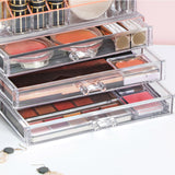 Hoe geweldig - Deze cosmetische organizer biedt zoveel opbergruimte, maar neemt heel weinig ruimte in beslag. Stapel de bovenste en onderste stukken op elkaar om uw kaptafel overzichtelijker te maken. Zet de make-up box in een hoek, alles wat je nodig hebt zit op één plek.