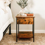 Nachtkastje - Bijzettafe - Met lade en plank - Vintage bruin / zwart