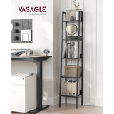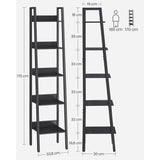 - [Slanke vorm, perfect voor krappe ruimtes] Deze boekenkast neemt weinig vloeroppervlak in beslag (slechts 30 x 33,8 cm) en maakt dankzij de hoogte van 170 cm en 5 planken optimaal gebruik van de verticale ruimte - deze ruimtebesparende ladderplank past goed in krappe ruimtes ruimtes