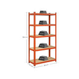 Opbergrek met 5 legborden - verstelbare legborden - 180 x 90 x 40 cm - tot 875 kg draagvermogen