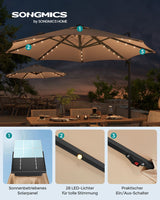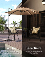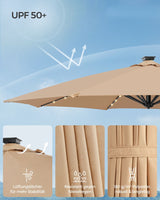 • [Geniet van avonden in de buitenlucht] Geniet van de betoverende zonnestralen van deze offsetparasol met 28 LED-lampjes op zonne-energie! Het warme licht geeft met één druk op de knop een magische, romantische sfeer aan uw avonden in de buitenlucht