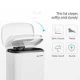 - Laat ook zachte kant zien: Hoewel deze vuilnisbak een stevige buitenbak heeft, heeft hij ook zijn zachtere kant: Dankzij de ingebouwde demper klapt het deksel niet abrupt dicht, maar sluit het langzaam en geruisloos