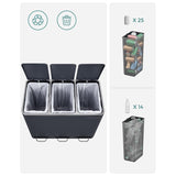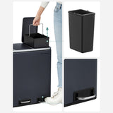 Recycleren kan ook eenvoudig zijn: Met deze pedaalemmer met 3 gescheiden compartimenten kunt u uw afval, bijv. restafval en organisch afval, gemakkelijk sorteren. Het enige wat u hoeft te doen is op het pedaal trappen en het afval in de binnenbak gooien. U hoeft de bak zelfs niet met uw hand aan te raken, wat de hygiëne ten goede komt.