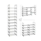 • Hoe makkelijker hoe beter! U hoeft alleen de metalen buizen in de plastic connectoren te steken, geen gereedschap nodig! Dan kun je je sloffen, sneakers, hoge hakken, sandalen of ballerina's op je nieuwe schoenenrek zetten