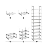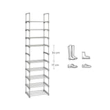 • Nieuwe schoenen zijn van harte welkom! Moet u door plaatsgebrek veel van uw schoenen opgeven? Wat jammer voor jou als echte schoenenfreak! Dit schoenenrek met 10 planken biedt je veel opbergruimte zodat je al je nieuwe schoenen kwijt kunt!