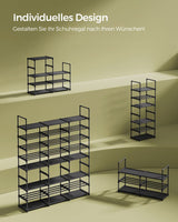 - [2 compartimenttypes] Dit schoenenrek biedt compartimenten van niet-geweven stof voor hoge hakken en tassen en compartimenten van stalen buis voor platte schoenen en dozen. Er is ruimte voor alles in dit veelzijdige opbergrek