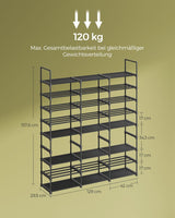 - [Stevig en stabiel] Het schoenenrek is gemaakt van hoogwaardige stalen buizen en slijtvaste niet-geweven stof, is duurzaam en elk compartiment kan maximaal 5 kg dragen. De meegeleverde anti-tipbescherming zorgt voor meer stabiliteit en voorkomt wiebelen