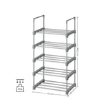 Schoenenrek - Met 5 niveaus - Metalen schoenenkast - Stapelbaar - Ruimtebesparend - Staande plank - Zilver
