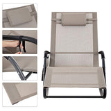 Schommelstoel -Tuinstoel - Ligstoel - Voor in de tuin - Met hoofdsteun en zijvak - Grijs