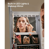 Begin elke dag met een prachtige look: Deze sieradenkast biedt voldoende ruimte om sieraden en make-up netjes en binnen handbereik op te bergen. De frameloze full-body spiegel is uitgerust met een ledverlichting met 3 instelbare kleuren en helderheid, zodat je jezelf nauwkeurig kunt bekijken. Met deze spiegel wordt je routine eenvoudiger en kun je perfect stylen voordat je het huis vertrekt.