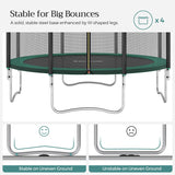 Trampolinespringen moet natuurlijk vooral leuk zijn. De veiligheid mag echter niet worden verwaarloosd. Daarom is deze trampoline voorzien van een zeer fijnmazig veiligheidsnet, dat een stoot bijzonder goed opvangt. Daarnaast zijn de palen van het net en de veren bekleed met EPE-schuim, wat ook de kans op blessures verkleint.