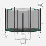 Trampoline Ø 305 cm - Ronde tuintrampoline - Met veiligheidsnet - Met ladder - Groen