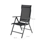 Ga op een van deze tuinstoelen zitten, leun achterover en ontspan in de frisse lucht. Gemaakt van hoogwaardig synthetisch materiaal, het ligvlak is ademend en comfortabel aanvoelend, en het premium aluminium frame zorgt voor een langdurig gebruik. Handige armleuningen en verstelbare rugleuning - Deze tuinstoelen bieden u een perfecte ontspanningsplek om in de zomer te genieten van koele drankjes of te kijken naar een prachtige zonsondergang.