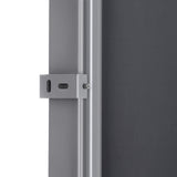 U kunt de zijluifel ook binnenshuis gebruiken, bijvoorbeeld in een dokterspraktijk of studio. Het enige wat je nodig hebt is een stabiele wand waar het zijgordijn aan kan worden bevestigd. Met de vloerbeugel kan de luifelpaal ook weer eenvoudig worden verwijderd, zodat er alleen een lage, kleine beugel op de vloer staat die niet bijzonder opvalt.