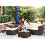 Tuinmeubelset - Lounge set - Tuinbank - Tuintafel met glazen blad - Gemaakt van polyrotan - Handgeweven - bruin-beige