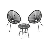 Balkonmeubilair - Tuinmeubelset - Terrasmeubilair - Set van 3 - glazen tafelblad - 2 stoelen - Zwart