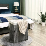 Wasmand - Handgeweven - Met deksel - 90 L - Polyrotan - Grijs