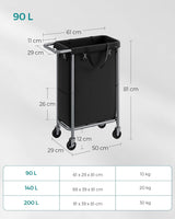 Wasmand - 90 liter - Met wieltjes en handvat - Zwart